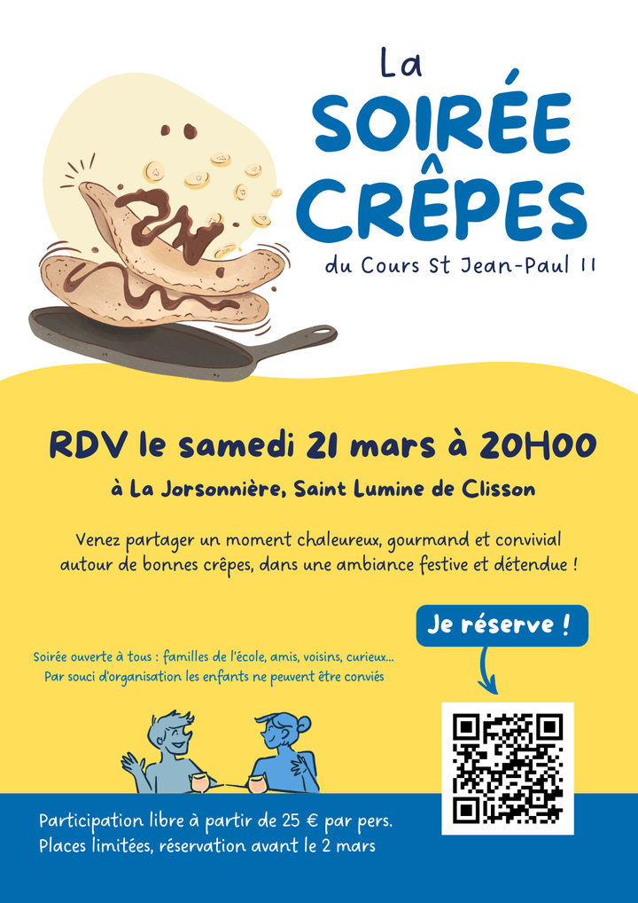L’école organise une grande soirée crêpes et nous serions très heureux de vous y retrouver !